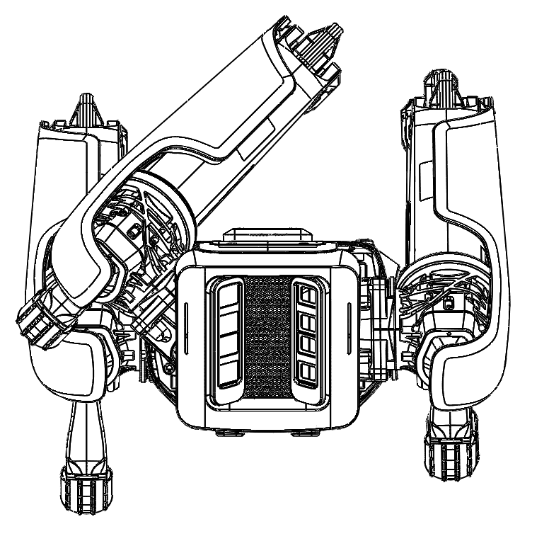 When the robot is unpowered, the robot’s legs may move into the designated design space above the robot, as shown in this illustration: